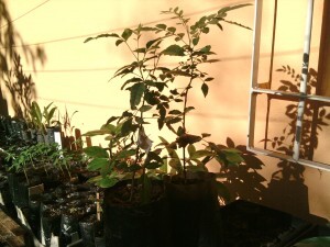 “Transplantei-as para um saquinho maior. Elas ainda não foram para o solo ainda porque estou aguardando um maior enraizamento no novo recipiente e desenvolverem mais. Vou plantá-las na chácara que temos em Ravena”. Manoelito Ornelas de Melo